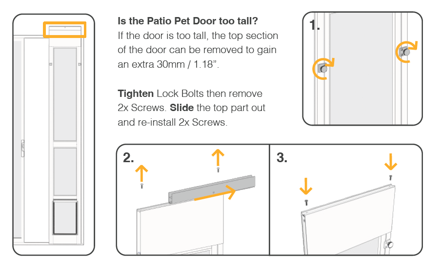 remove top panel patio pet door, glass patio pet door height adjustment, patio pet door too tall, sliding door pet door fit adjustment, pet door top section removal